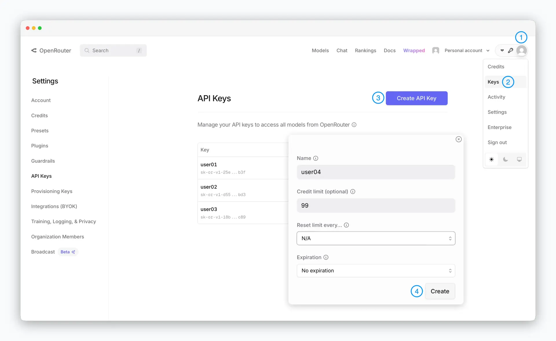 오픈라우터 API 키 발급받기