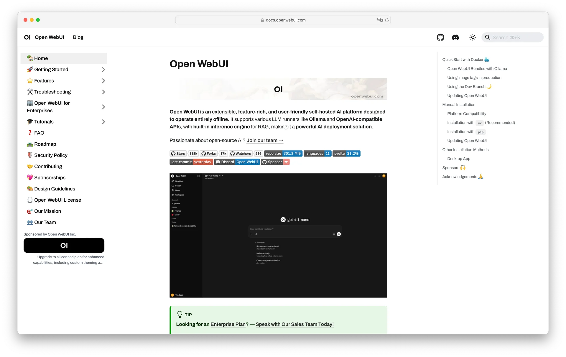 대표적인 서비스로 OpenWebUI가 있습니다. 현재 전 세계적으로 가장 많이 사용되는 오픈소스 AI 인터페이스로 셀프 호스팅 방식으로 사용할 수 있으며, ChatGPT와 유사한 사용자 경험(UX)을 제공하여 별도의 학습 없이도 누구나 쉽게 사용할 수 있다는 점이 특징입니다.